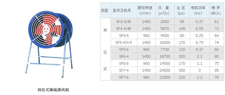 SF系列風(fēng)機(jī)按使用要求分為壁式、崗位式(撐腳式、固定式、旋轉(zhuǎn)式)、管道式三種。