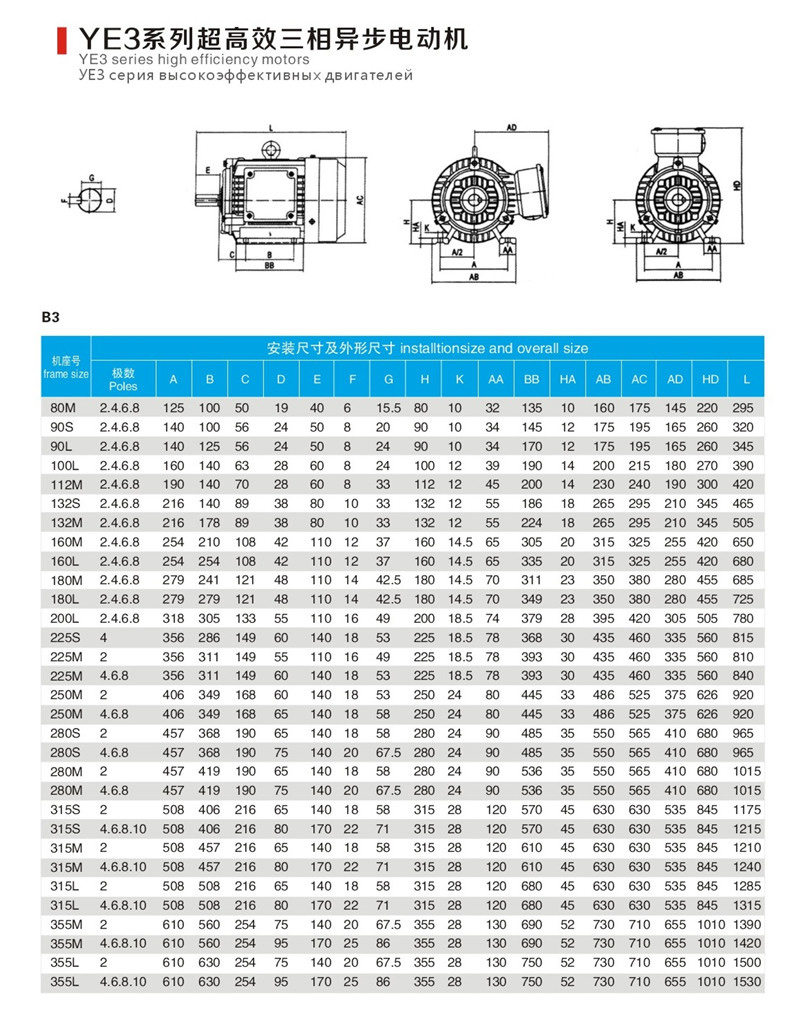 其安裝尺寸Y2、Y3、YX3系列完全相同,但電氣