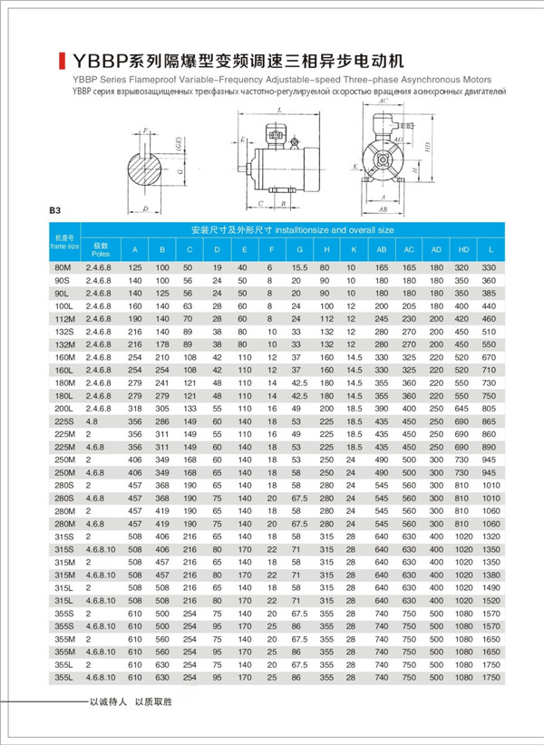 YBBP系列隔爆型變頻調(diào)速三相異步電動(dòng)機(jī),是我公司根據(jù)市場(chǎng)需求而開發(fā)的新產(chǎn)品,與變頻器配合使用,可以實(shí)現(xiàn)較寬范圍內(nèi)平滑無級(jí)調(diào)速,調(diào)速范圍、動(dòng)態(tài)響應(yīng)、調(diào)速精度、低頻轉(zhuǎn)矩、轉(zhuǎn)差補(bǔ)償、功率因數(shù)、效率等方面均有很大的優(yōu)越性,是滿足煤炭、石油、化工等有爆炸性氣體混合物電動(dòng)機(jī)防爆性能符合GB3868.1-2010《爆炸性環(huán)境 第1部分:設(shè)備通用要求》和GB3868.2-2010《爆炸性環(huán)境 第2部分:由隔爆外殼“d”保護(hù)的設(shè)備》的規(guī)定。